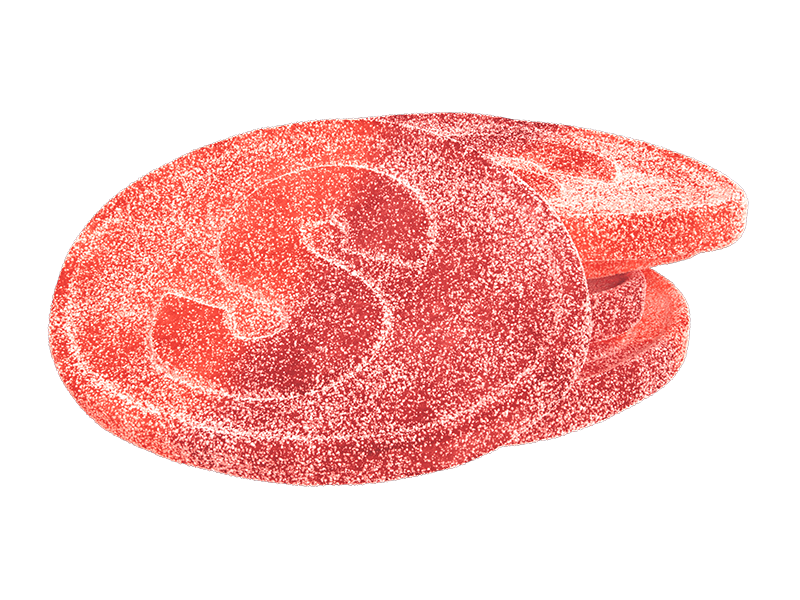 Glucose syrup, sugar, corn starch, acids: citric acid, malic acid; acidity regulators: sodium malates, sodium citrates; natural flavors; colors: concentrates of radish, lemon, and blackcurrant; color: paprika extract; wheat starch.